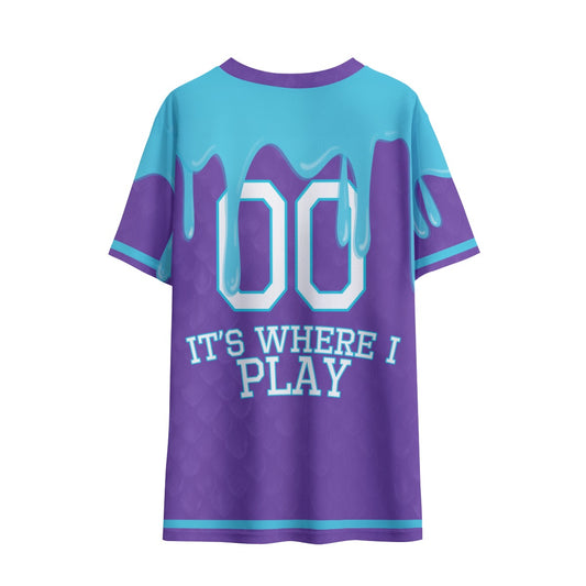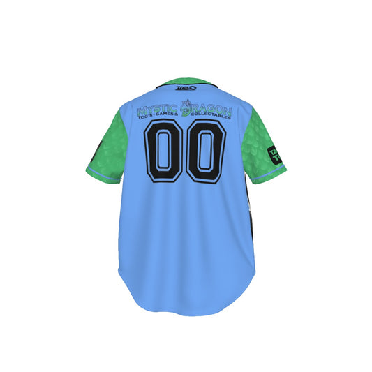 Mystic Dragon - Beyblade X - All-Over Print Men's Short Sleeve Baseball Jersey - Blue on Green