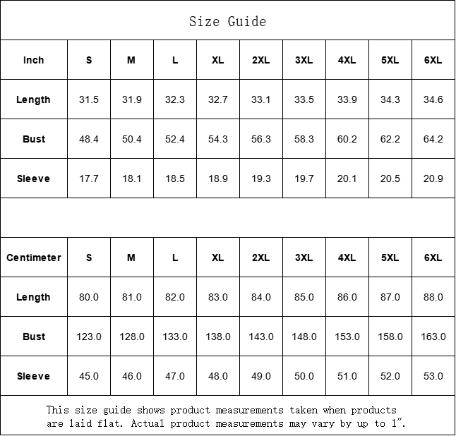 Centimeter | S | M | L | XL | 2XL | 3XL | 4XL | 5XL | 6XL |