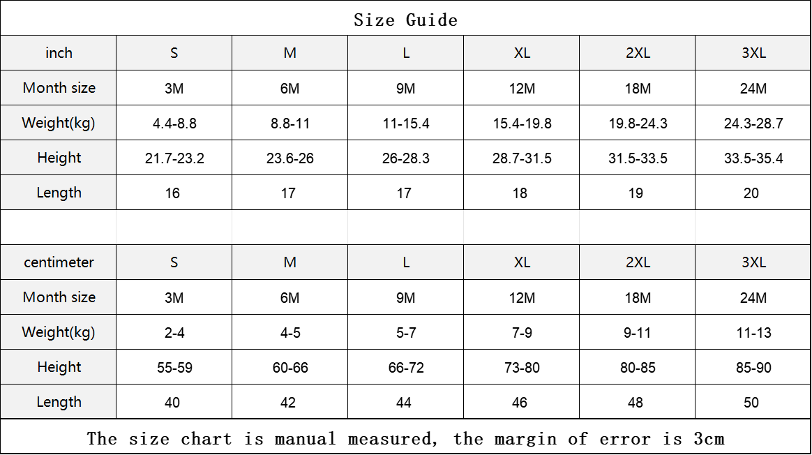 The size chart is manual measured, the margin of error is 3cm