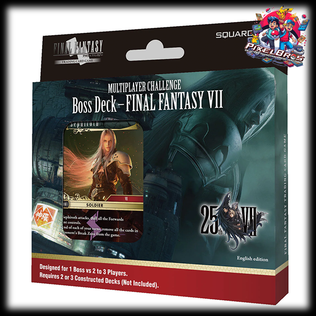 “MULTIPLAYER CHALLENGE Boss Deck - FINAL FANTASY VII” is the second pre-constructed deck to be released as a Boss Fight-specific deck, following “Boss Deck - Chaos” that was released in 2021. This deck specializes in FINAL FANTASY VII and contains many Boss Fight-specific cards for antagonists from the series, such as Sephiroth and Rufus.