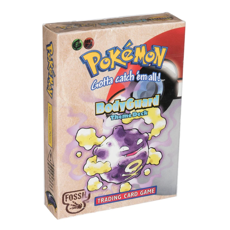 The BodyGuard Theme Deck from the Fossil expansion of the Pokémon Trading Card Game predominantly focuses on Grass-type and Fighting-type Pokémon. Each Theme Deck is packaged with a 60-card deck, damage counters, a custom coin, a rulebook, and a card list.