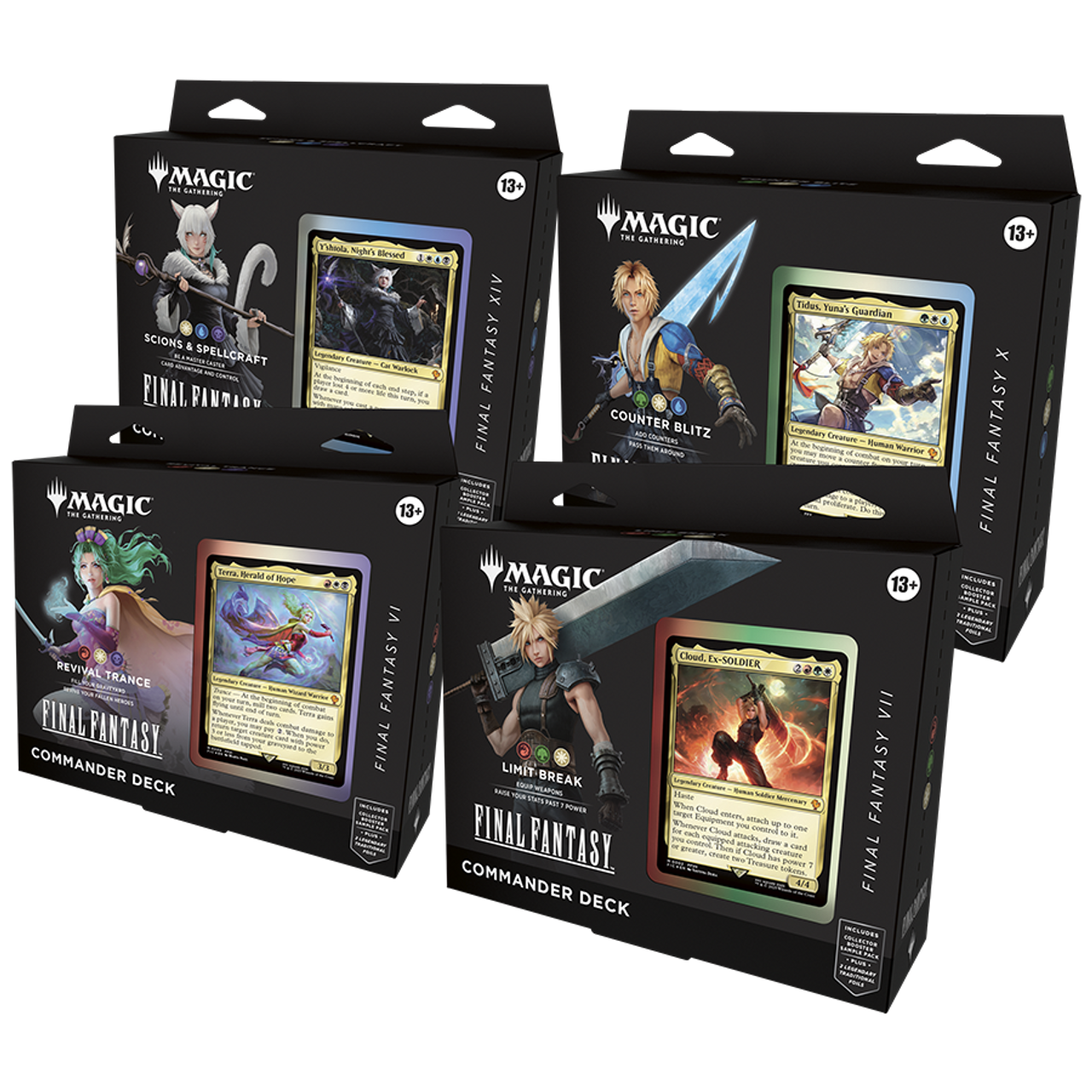 - GET ALL 4 FINAL FANTASY-THEMED COMMANDER DECKS—FINAL FANTASY VI: Revival Trance, FINAL FANTASY VII: Limit Break, FINAL FANTASY X: Counter Blitz, and FINAL FANTASY XIV: Scions & Spellcraft
