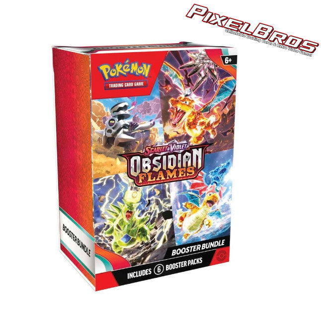 - Includes six booster packs from the Pokémon TCG: Scarlet & Violet—Obsidian Flames expansion