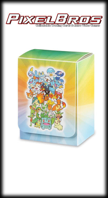 Keep your cards in battle-ready condition with this deck box starring the first partner Pokémon from numerous regions! The cheerful Pokémon and rainbow design make this a fun way to brighten your TCG collection. Dividers and a secure closure keep everything in place—this box is sure to delight players and collectors alike.