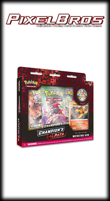 The Pokémon TCG: Champion’s Path Pin Collection (Motostoke Gym) includes: