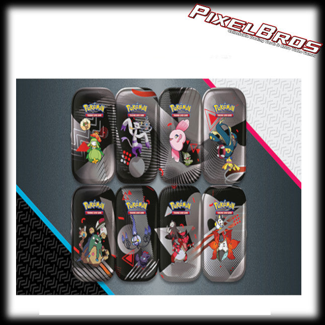 Add more cards to your Scarlet & Violet—Black Bolt and Scarlet & Violet—White Flare collection and get a fun collectible with each delightful Mini Tin. There are eight Mini Tin designs in total to collect, and each Mini Tin is adorned with artwork that can be combined to form one large image.